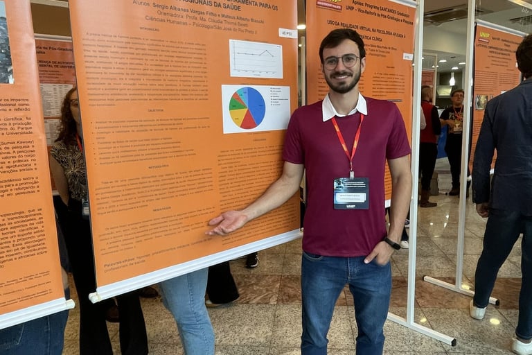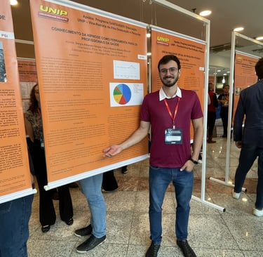 Ao longo da faculdade também tive a oportunidade de viver experiências muito marcantes, como desenvolver uma pesquisa de iniciação científica que ampliou bastante minha visão sobre o universo acadêmico e fortaleceu ainda mais meu interesse pela produção de conhecimento. Esse contato com a pesquisa acadêmica também contribuiu para o desenvolvimento de habilidades importantes, como a escrita científica e o pensamento crítico, que foram fundamentais durante a elaboração do nosso TCC (Trabalho de Conclusão de Curso).